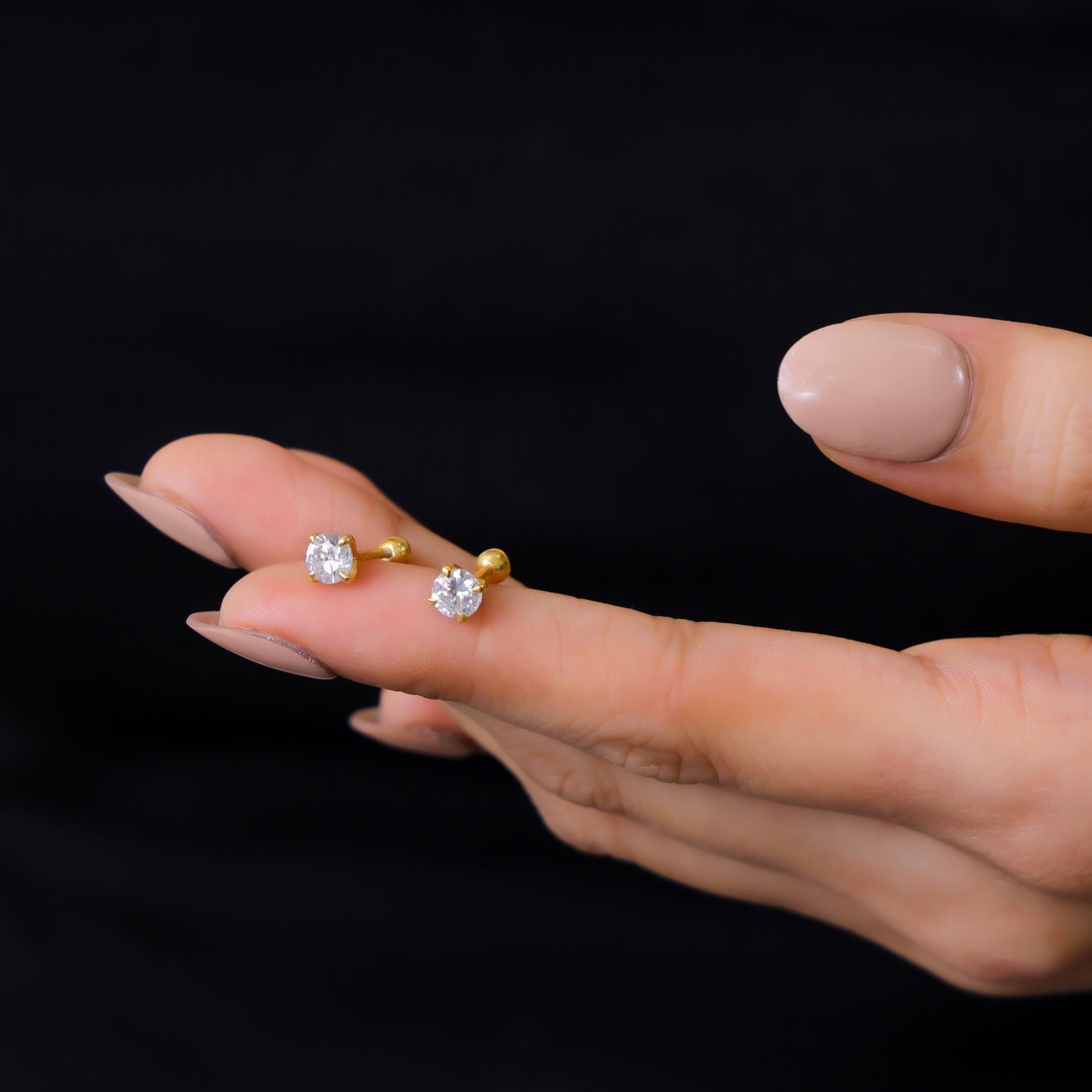 Diamond Round Stud - 925 Sterling Silver 18Kt Gold Platted