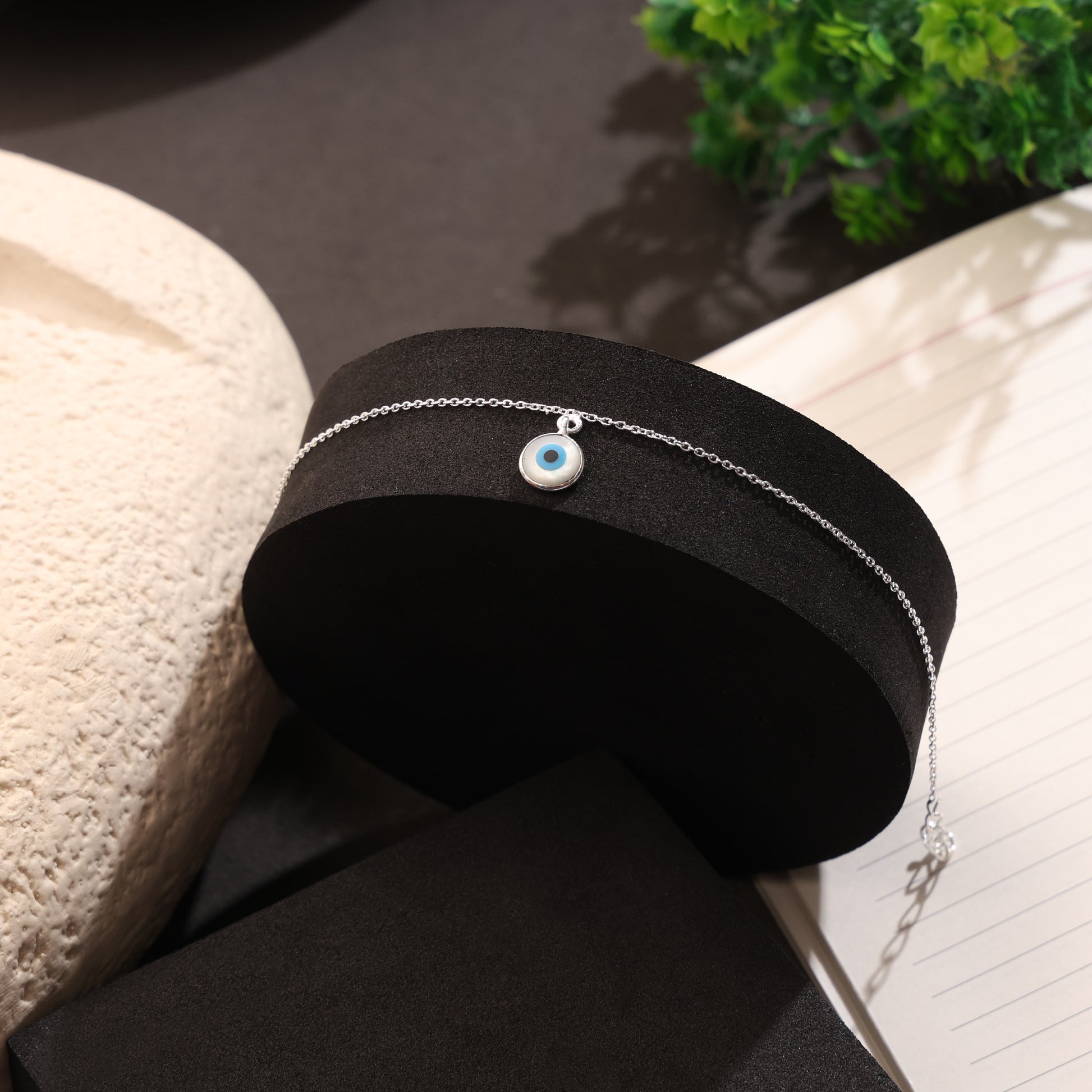 925 Sterling Silver Evil Eye Anklet – Adjustable Nazar Protection